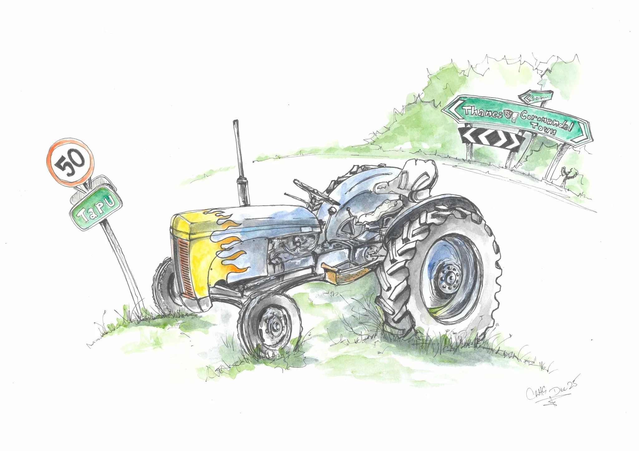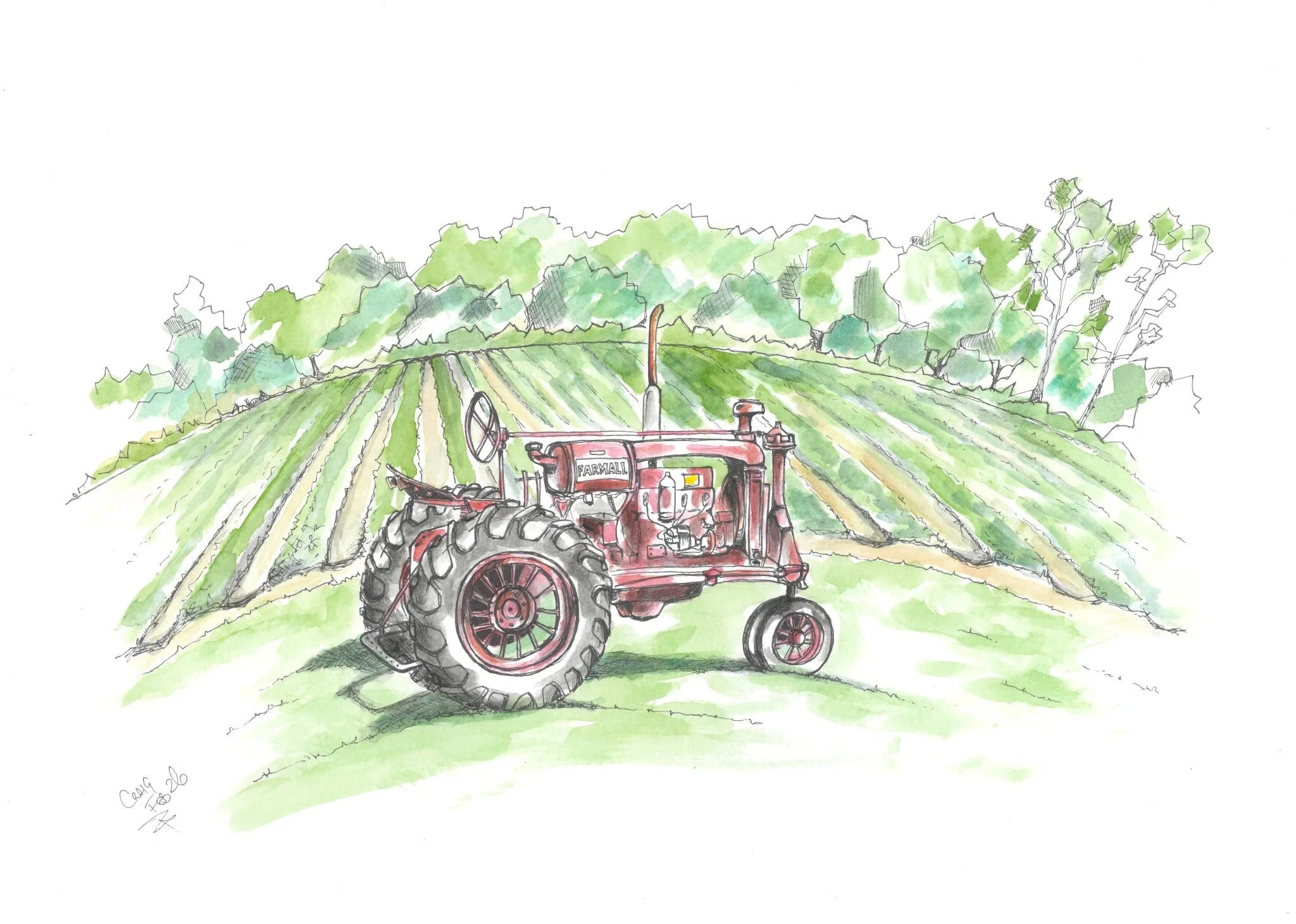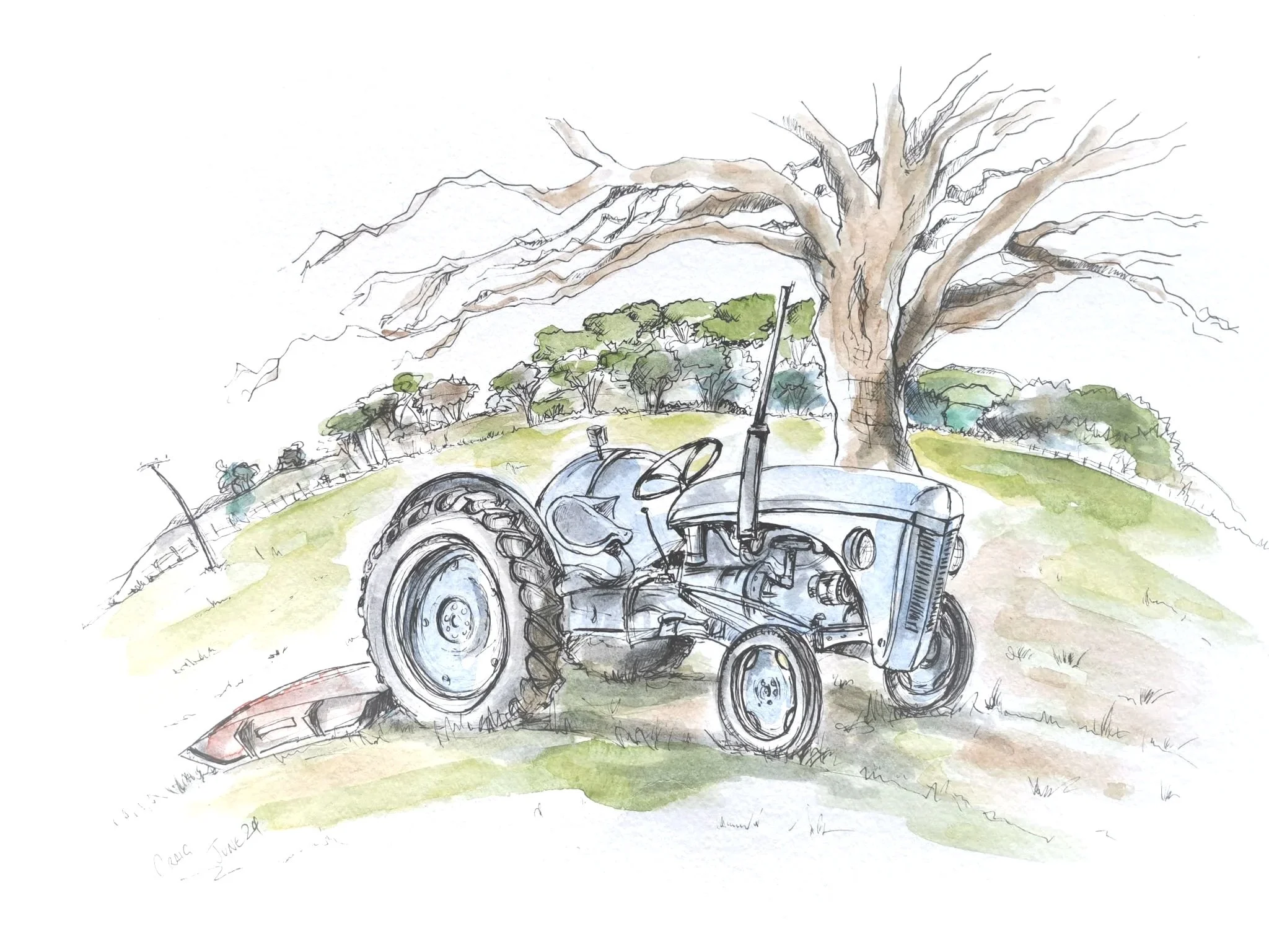 A collection of some tractor illustrations—great pieces of rural machinery brought to life with fineliner details, while the wash adds a splash of colour and keeps everything loose and lively.