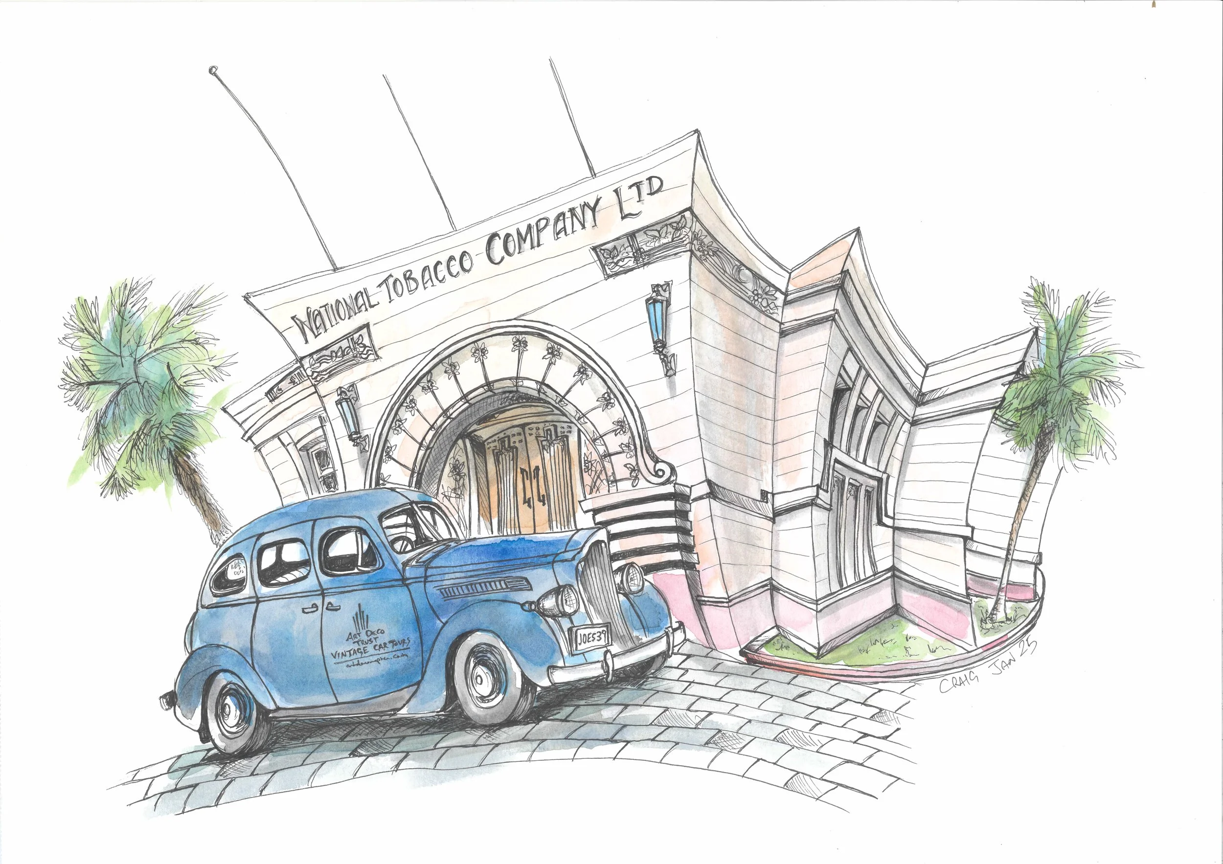 Napier City is well known for its many Art Deco landmarks, which made it a great source of inspiration. The clean lines, geometric shapes, decorative details of the buildings, and the presence of 1930s cars provided plenty of interesting subject matter. Walking through the city, I found that the distinctive architecture added character and style to each drawing, making the experience both enjoyable and creatively rewarding.